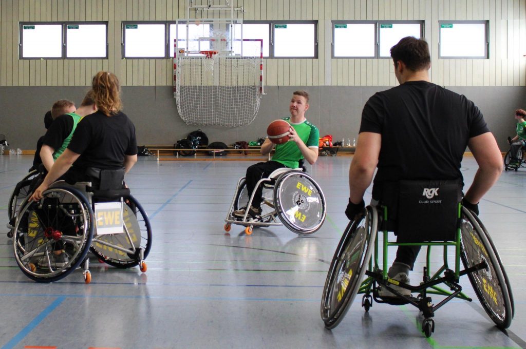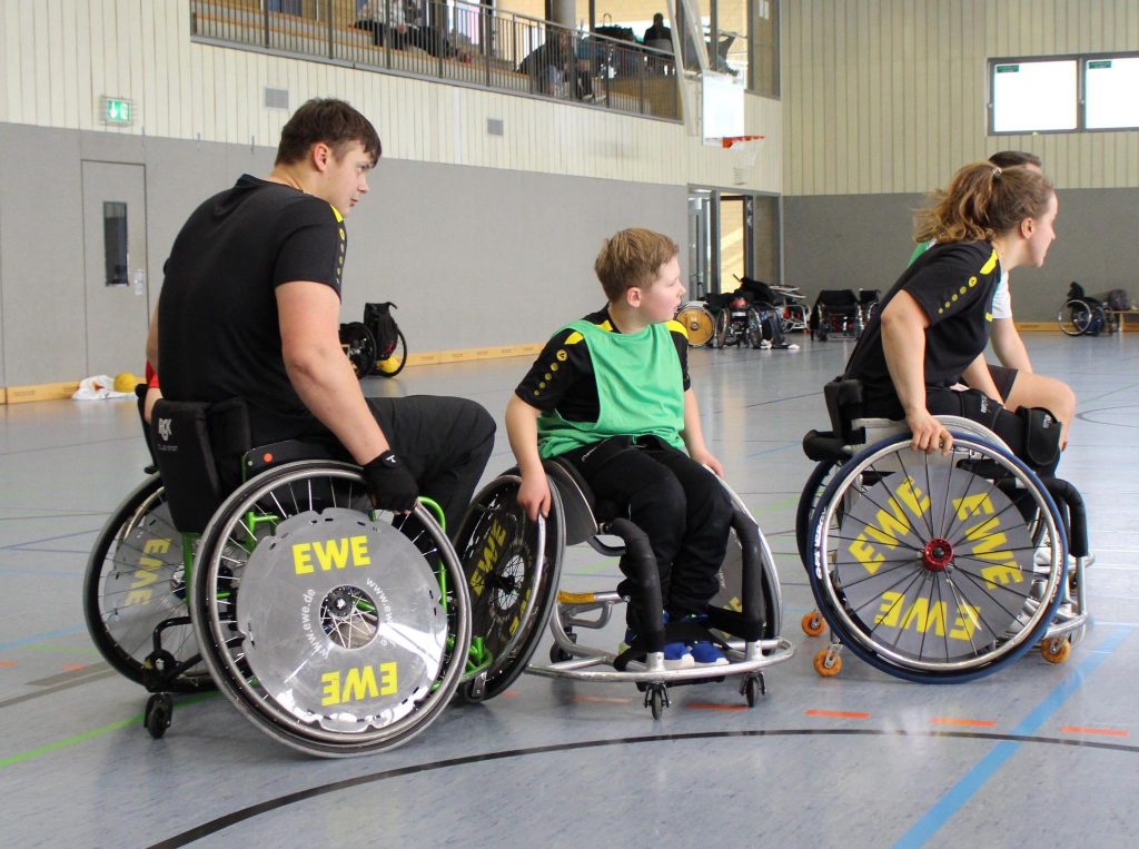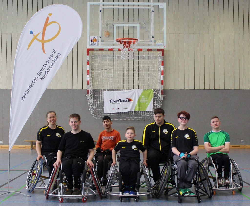 Am 22.03. fand in Osnabrück im Rahmen der TalentTage des BSN ein Trainingstag für junge Sportlerinnen und Sportler im Rollstuhlbasketball statt. Das Angebot richtete sich an Spieler allen Niveaus von Anfängern bis Landeskaderathleten. Geleitet wurde das Training von Martin Kluck (u.a. Landestrainer Junioren und Damen) und Lena Knippelmeyer (Nationalspielerin und Organisatorin/Trainerin des Mädels Trainings des BSN). Insgesamt nahmen rund 25 Sportlerinnen und Sportler aus ganz Niedersachsen am Training teil. Mit dabei waren für den RSC Oldenburg (von links nach rechts) Fenja (Landeskader NDS) sowie die Spieler unserer Nachwuchsmannschaften Marten, Raid, Fynn, Niclas, Cilly und Tom (TUS Holtriem).