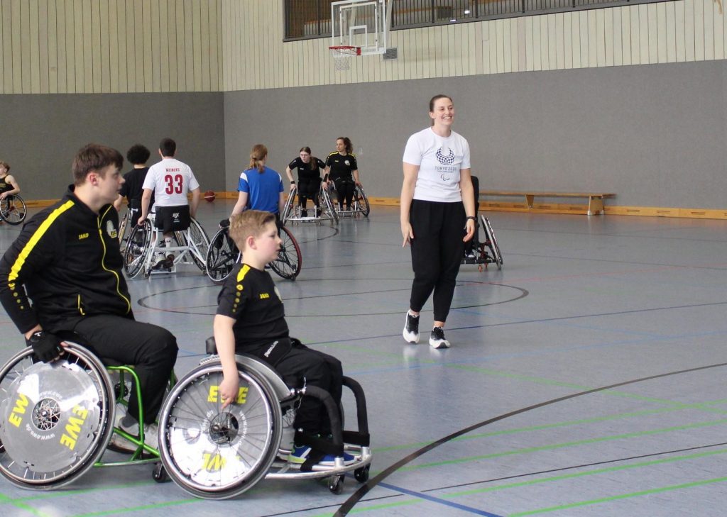 Das Training war so gestaltet, dass zum Kennenlernen koordinative, fahrerische und spielerische Elemente mit der gesamten Gruppe trainiert wurden. Anschließend wurde auf einzelne Techniken im Bereich Ballhandling, Passen und Werfen in zwei Leistungsgruppen tiefer eingegangen. Am Ende wurden alle Spielerinnen und Spieler in drei gemischte Teams eingeteilt und das Erlernte in einem kleinen Turnier direkt umgesetzt.